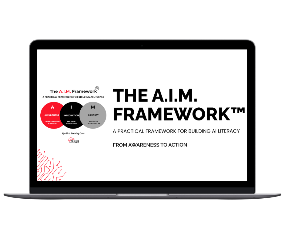 That’s why Girls Teching Over offers customized AI Literacy training built around The A.I.M. Framework™ (Awareness, Integration, and Mindset) — helping your audience build real understanding and confidence with AI.