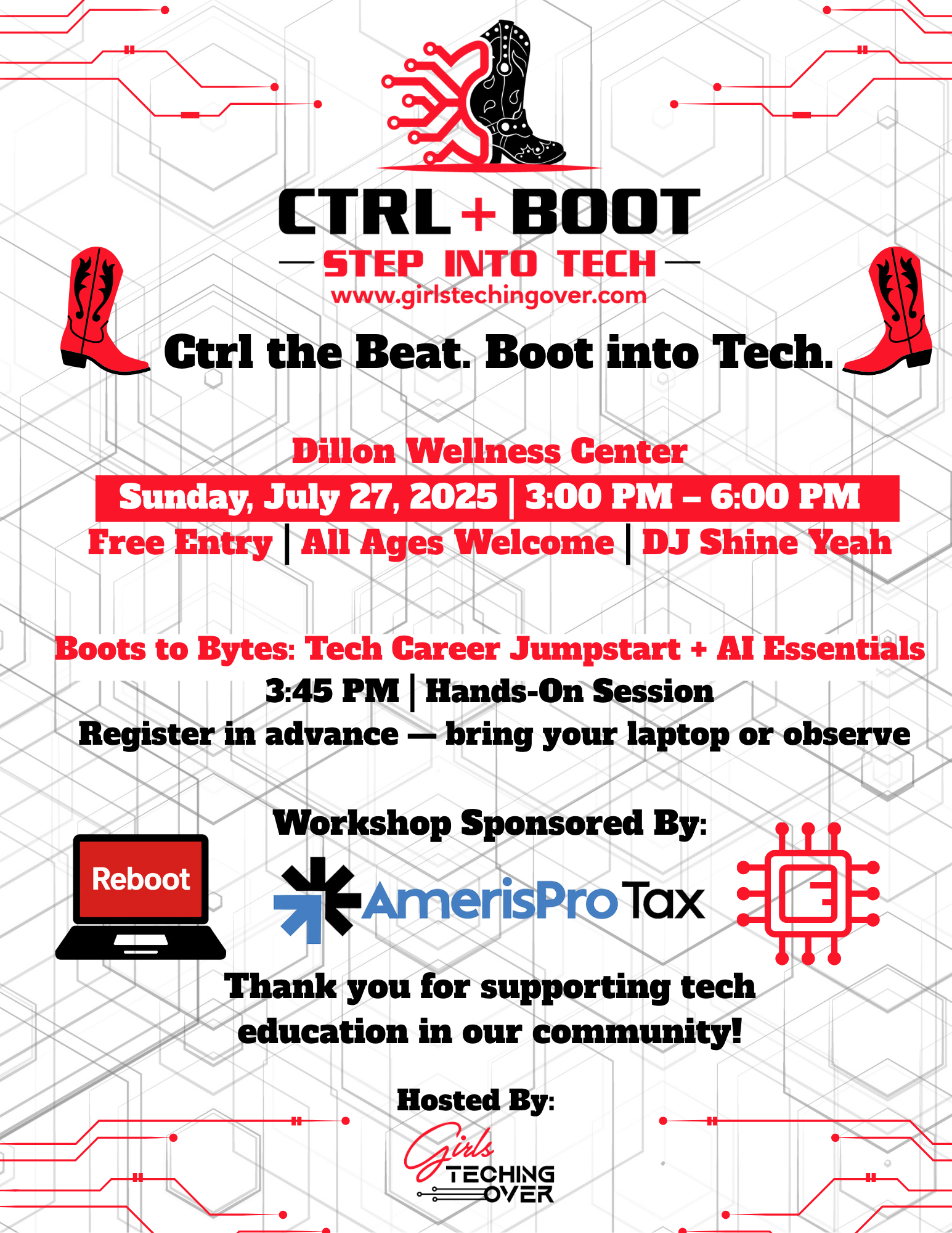 Join us at Ctrl + Boot: Step Into Tech for an unforgettable day of line dancing, music, food, AND hands-on tech exposure.