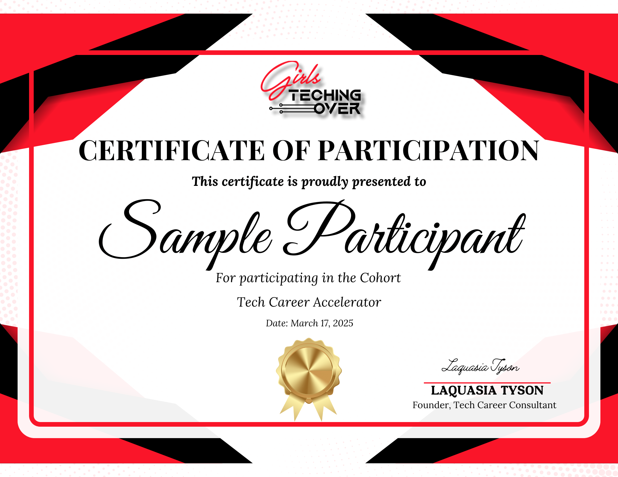 Completing the Tech Career Accelerator demonstrates your commitment and growth. Each graduate receives a certificate you can add to your resume, feature on LinkedIn, and share with your professional network as proof of your career-ready skills.