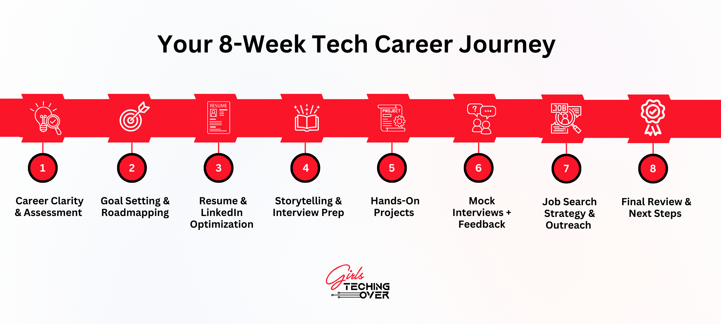 Whether you’re an organization building pipelines or an individual pivoting into tech, the 8-week accelerator provides a clear roadmap — from strengths assessment to career launch.